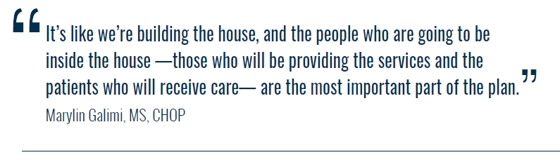 “It’s like we’re building the house, and the people who are going to be inside the house —those who will be providing the services and the patients who will receive care— are the most important part of the plan,” she said. “So, we work on how we’re going to create an environment that will attract new recruits to the area and make it more efficient for the people working inside the space to provide the services they’re skilled to do, and ultimately make it the best experience for the patient.”